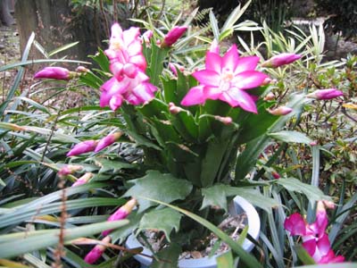 | 鋭い葉とは対照的な、美しい花を咲かせるシャコバサボテンは 鉢植えがおすすめです。 寒さに弱いので、室内の窓辺などで育てるのがよいでしょう。 |