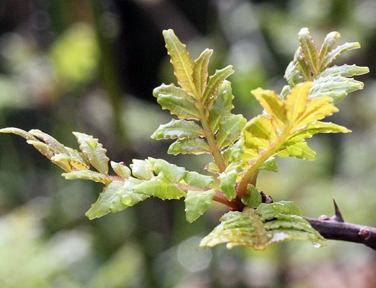 ・庭のサンショウの若葉が、出はじめました。 ・新芽は初々しく、力強く、若葉の柔らかそうな 薄緑色が綺麗でした。 |